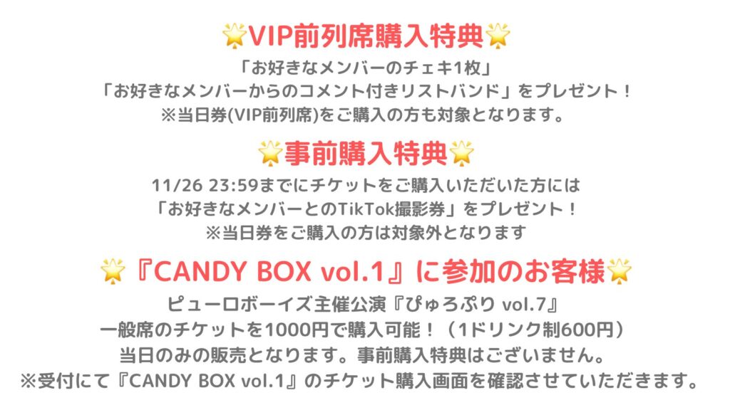 当 日 VIP前列席 ¥5,000(+1D) 一般席 ¥4,000(+1D)
