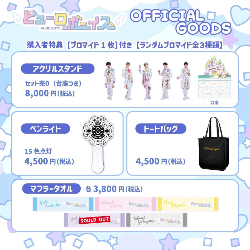 現在、ライブ会場でのみ販売しておりますグッズが、ECサイトでもご購入可能となりました。 また、オフシャルストアでご購入された方には、もれなく1商品につき1枚ブロマイドがついてきます。 ※ブロマイドは全3種類のランダムとなります。