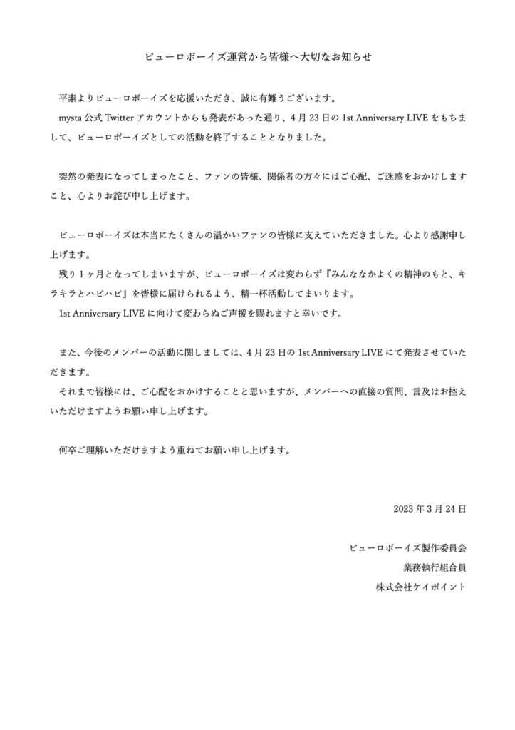 ピューロボーイズ運営から皆様へ大切なお知らせ